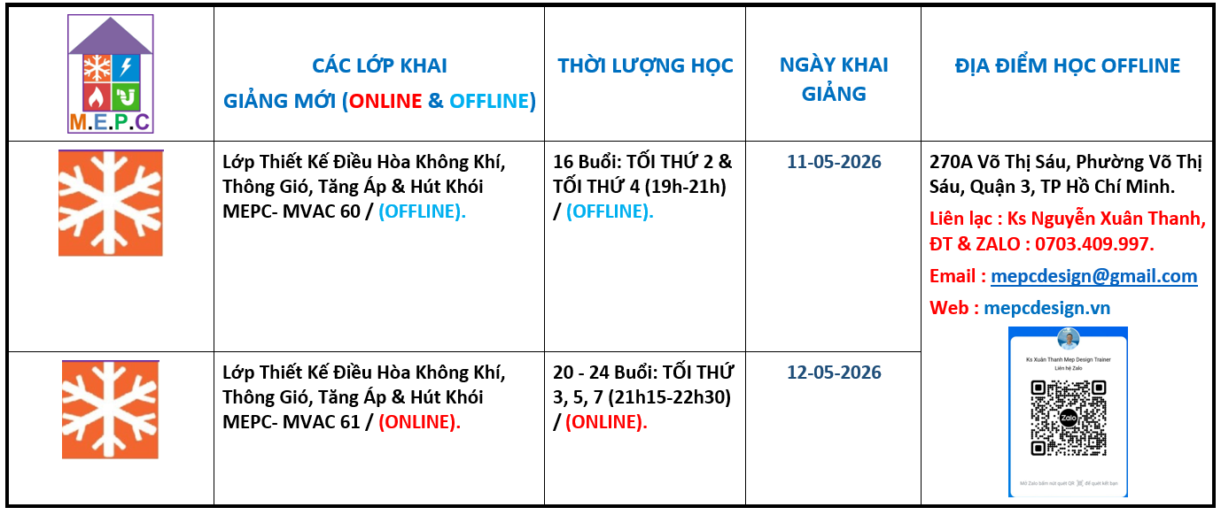 KHÓA HỌC ĐÀO TẠO VÀ HƯỚNG DẪN THIẾT KẾ HỆ THỐNG ĐIỀU HÒA KHÔNG KHÍ VÀ THÔNG GIÓ